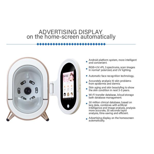 | M9 is an advanced skin detection equipment together with shooting, analyzing, displaying 3 functions in 1. It adopts RGB, UV, PL 3 spectrums, combines with artificial intelligenceand image analysis technology, after 10 years market test, 30 million clinical database analysis, achieves 20 seconds efficient skin analysis of 12 dermis and epidermis skin problems. Such as: spots, pores, moisture, textures, wrinkles, pigmentation and so on. According to the test results, VISIchange can auto-recommend products and treatment for customized skin management. It is an essential skin detection equipment for cosmetic company, beauty salon, skin clinic, training school, beauty center, beauty shop, spa, the market demand of it can be up to 100%. |